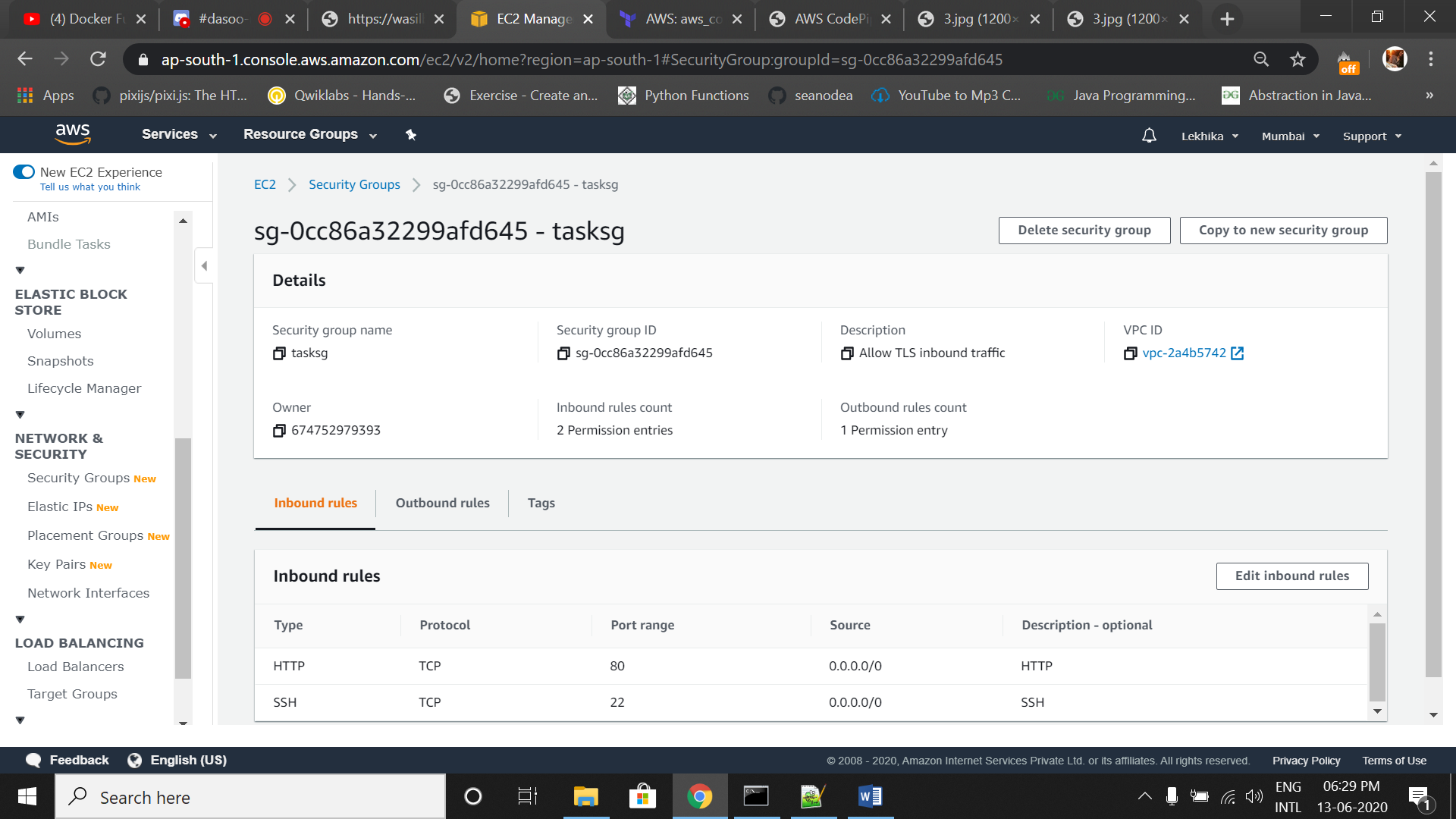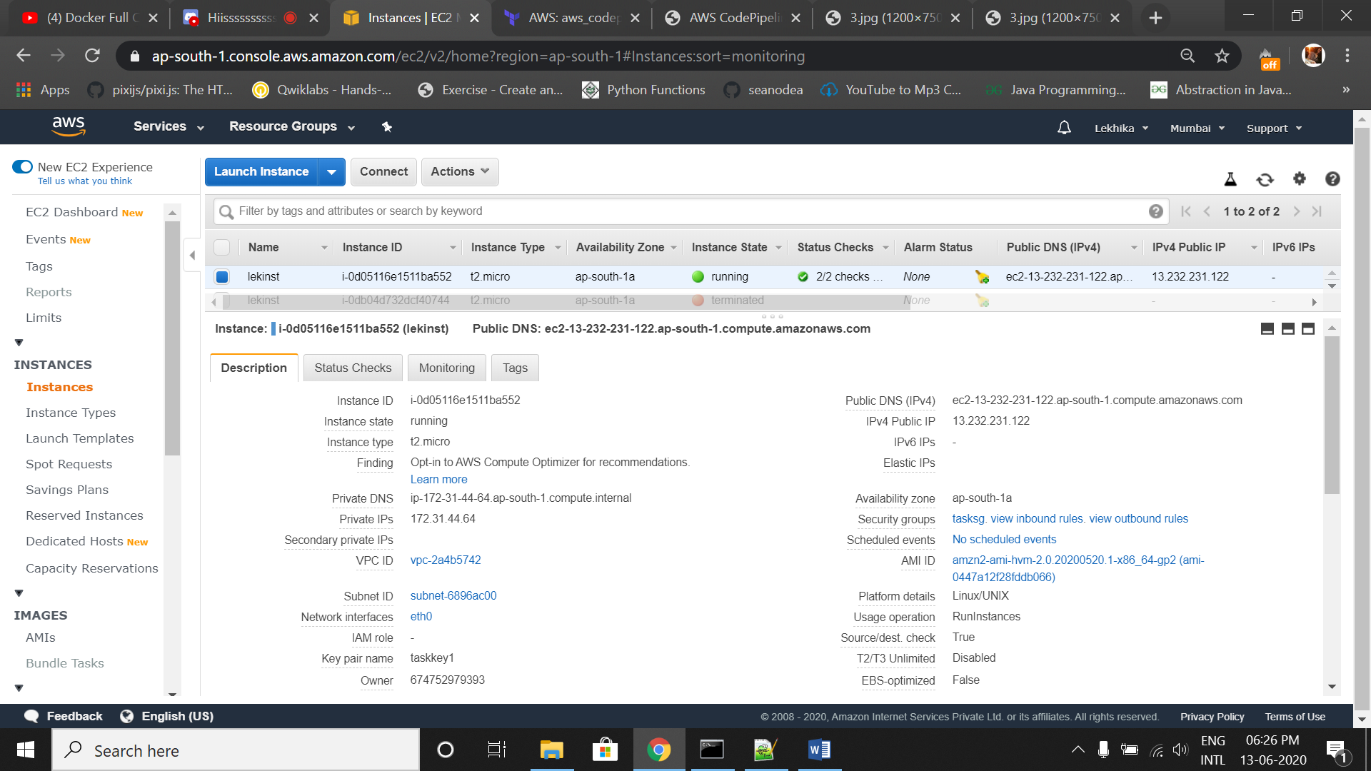 3. In this Ec2 instance use the key and security group which we have created in step 1.