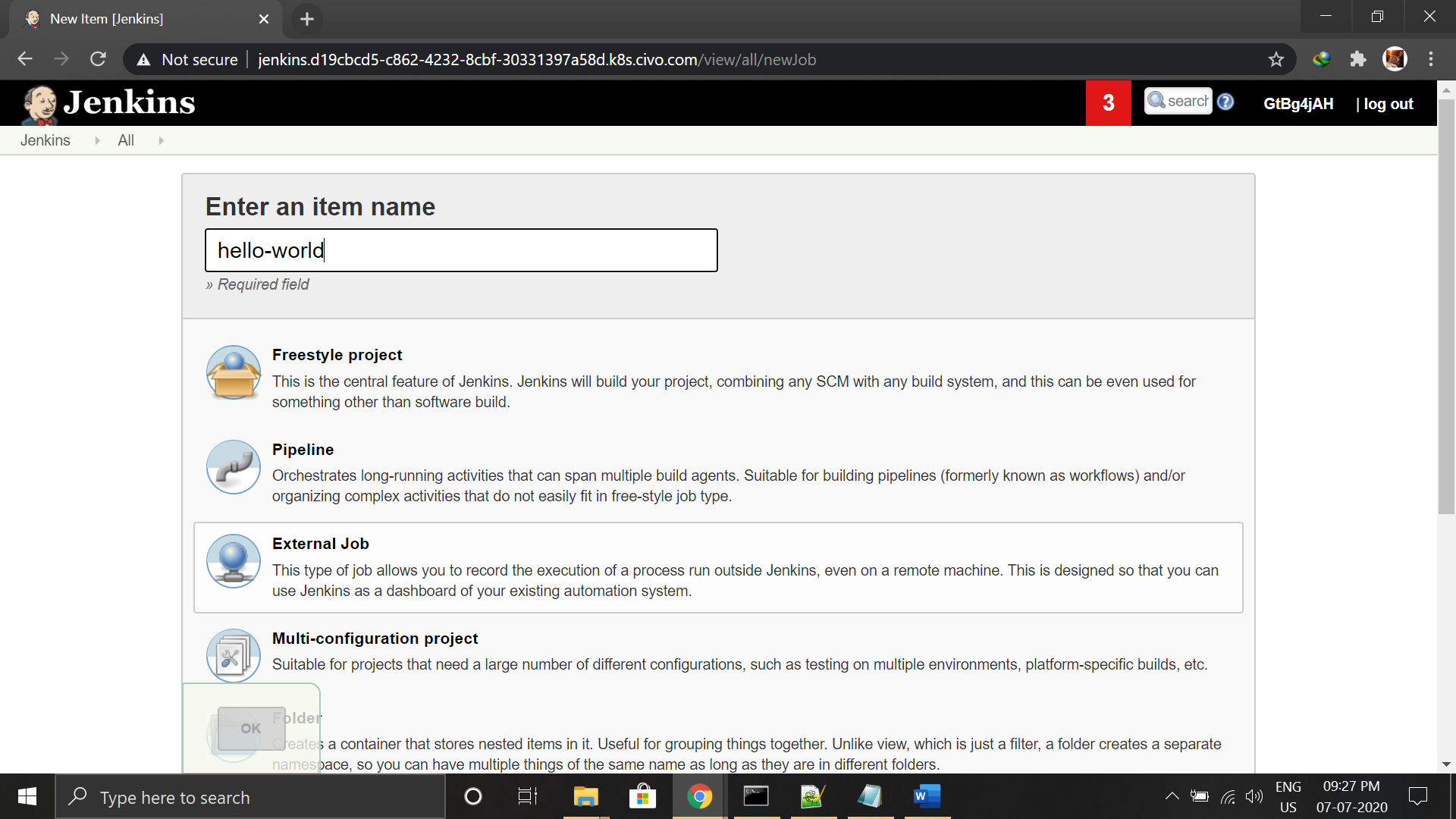 Now that Jenkins has been deployed, visit the address that was received from the ingress output: