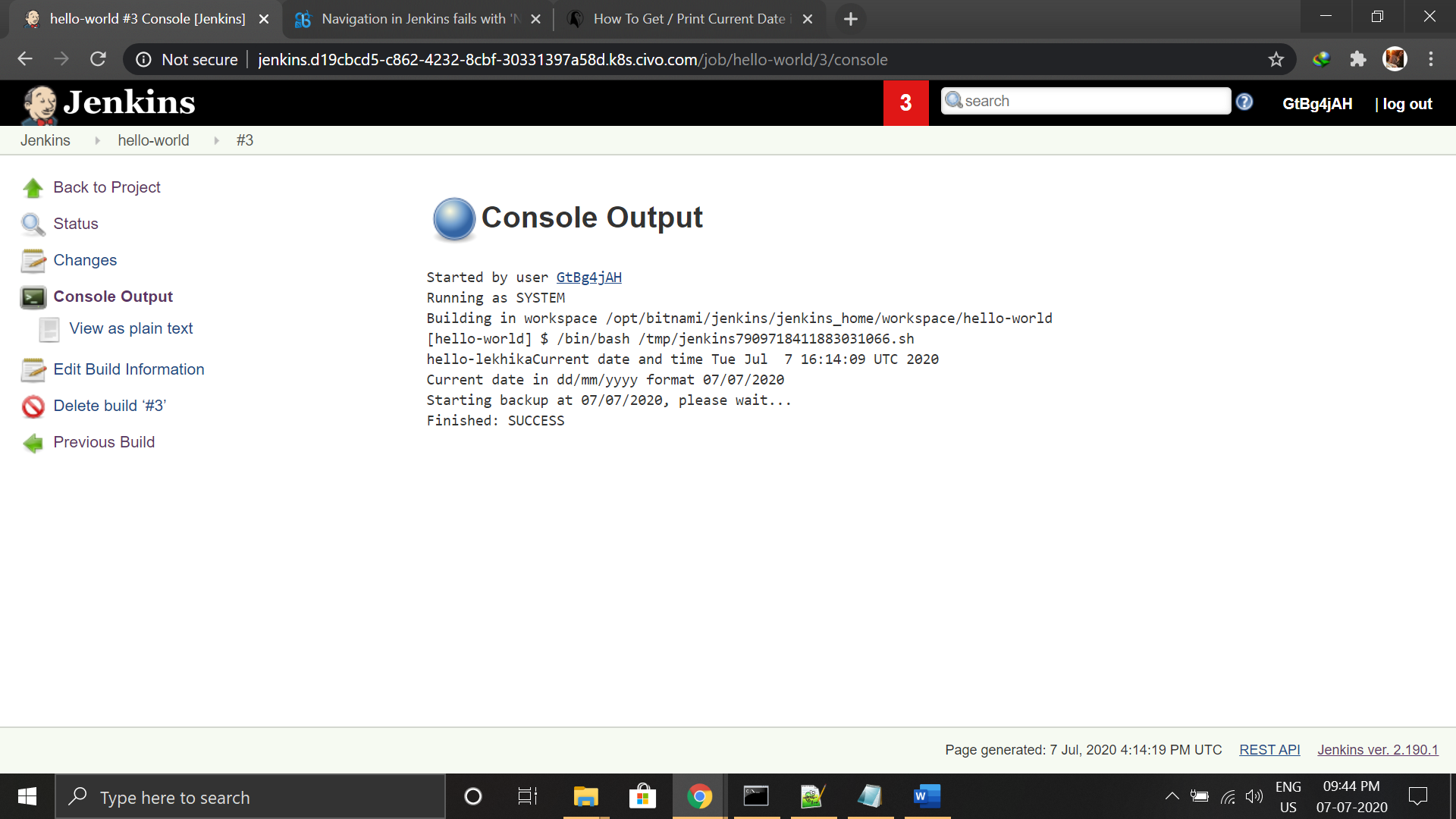 Then we will execute a very basic shell script that returns the date.After saving the job, select build now: